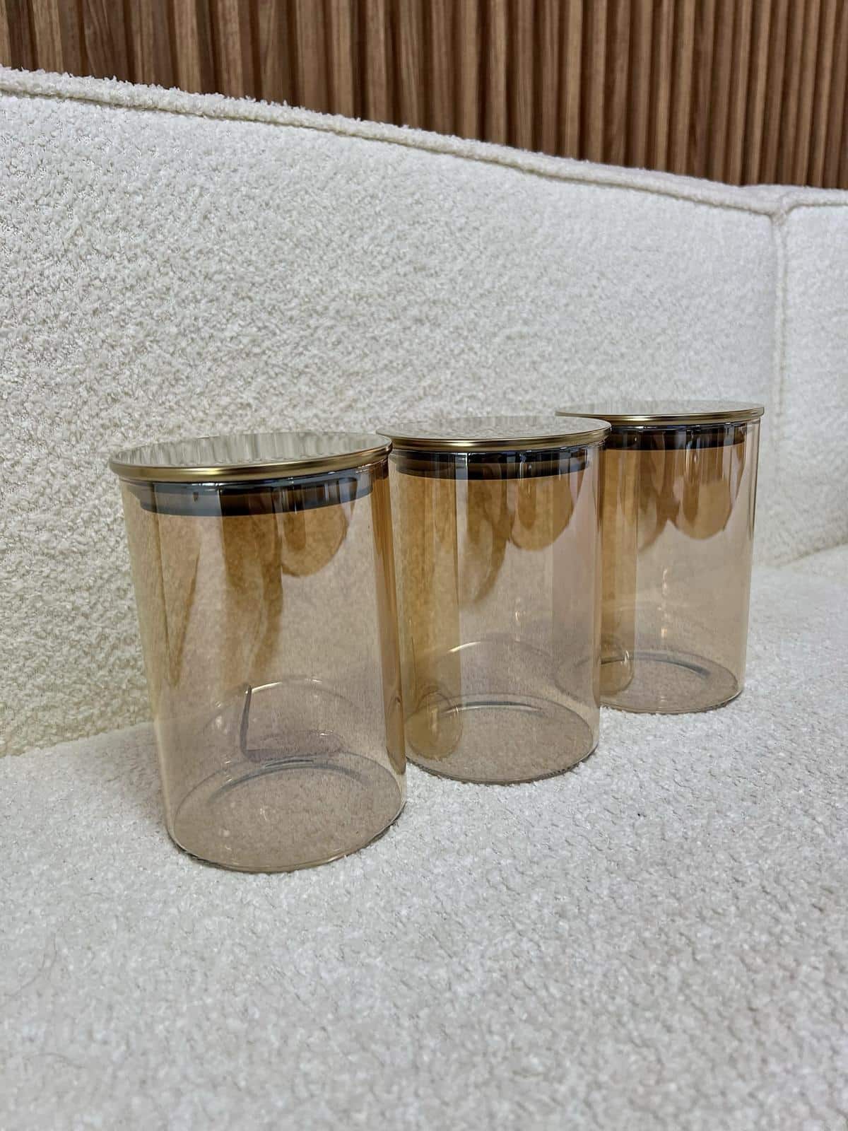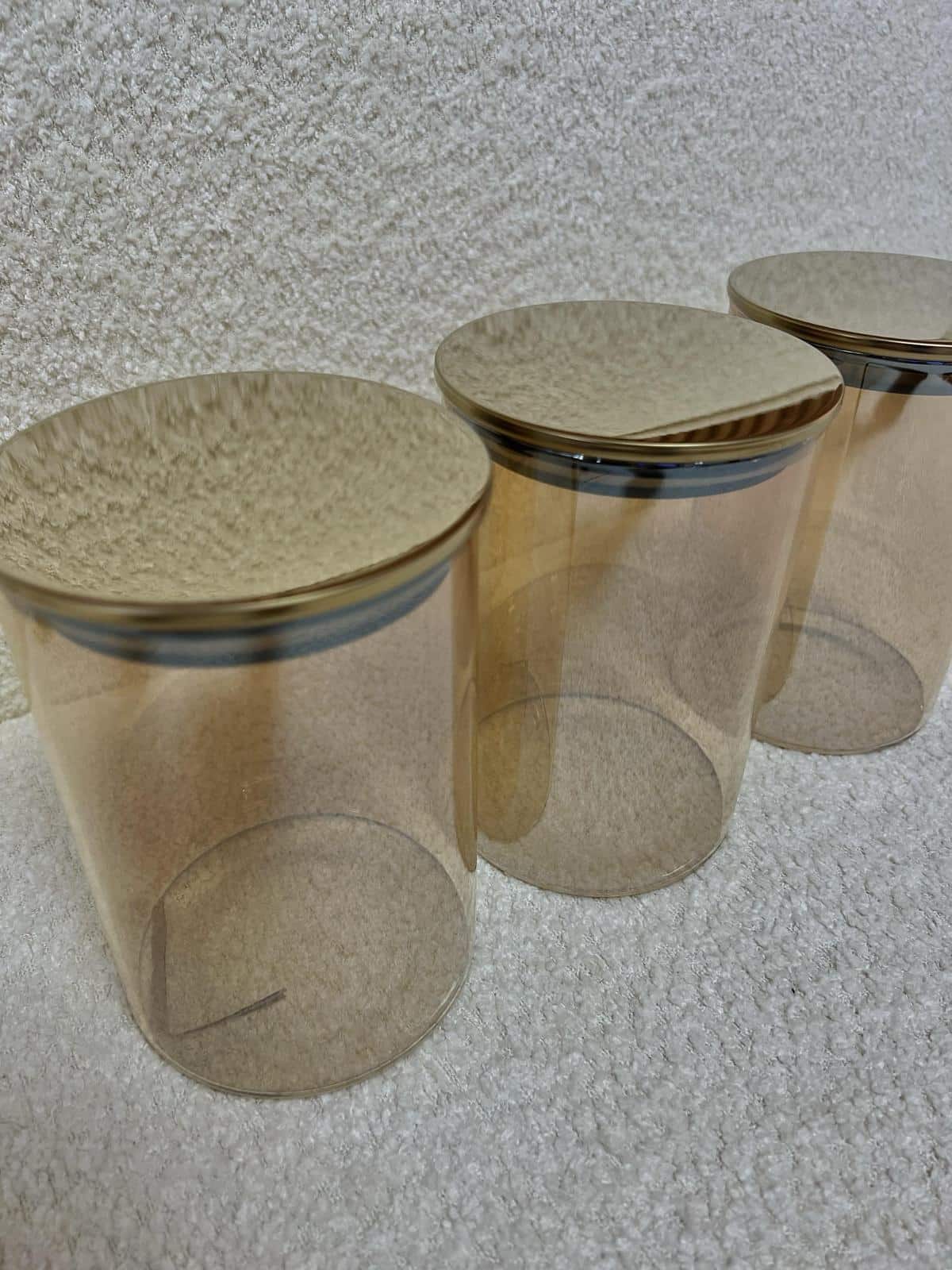 3 צנצנות זכוכית , רוז גולד עגול , גובה 15 ס”מ .